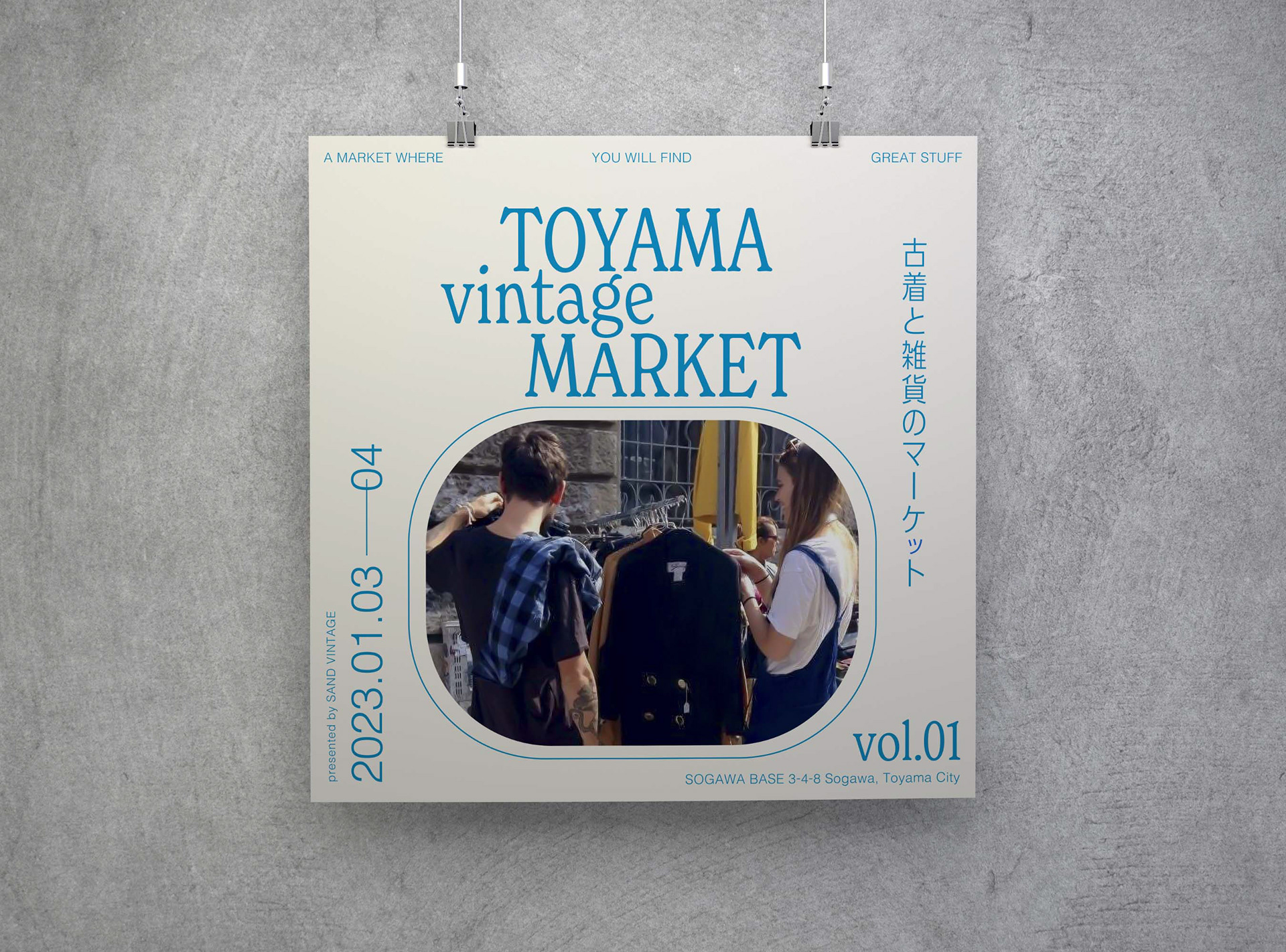 富山にて2023年1月3日、4日に古着と雑貨のマーケットを企画し、開催。2日間で約1500名を動員した。